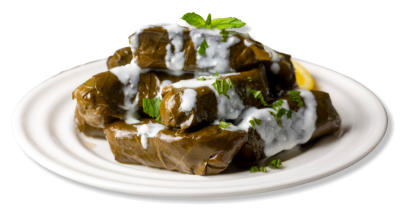 Turkish grape leaves stuffed with sautéed rice, onions,pine nuts,